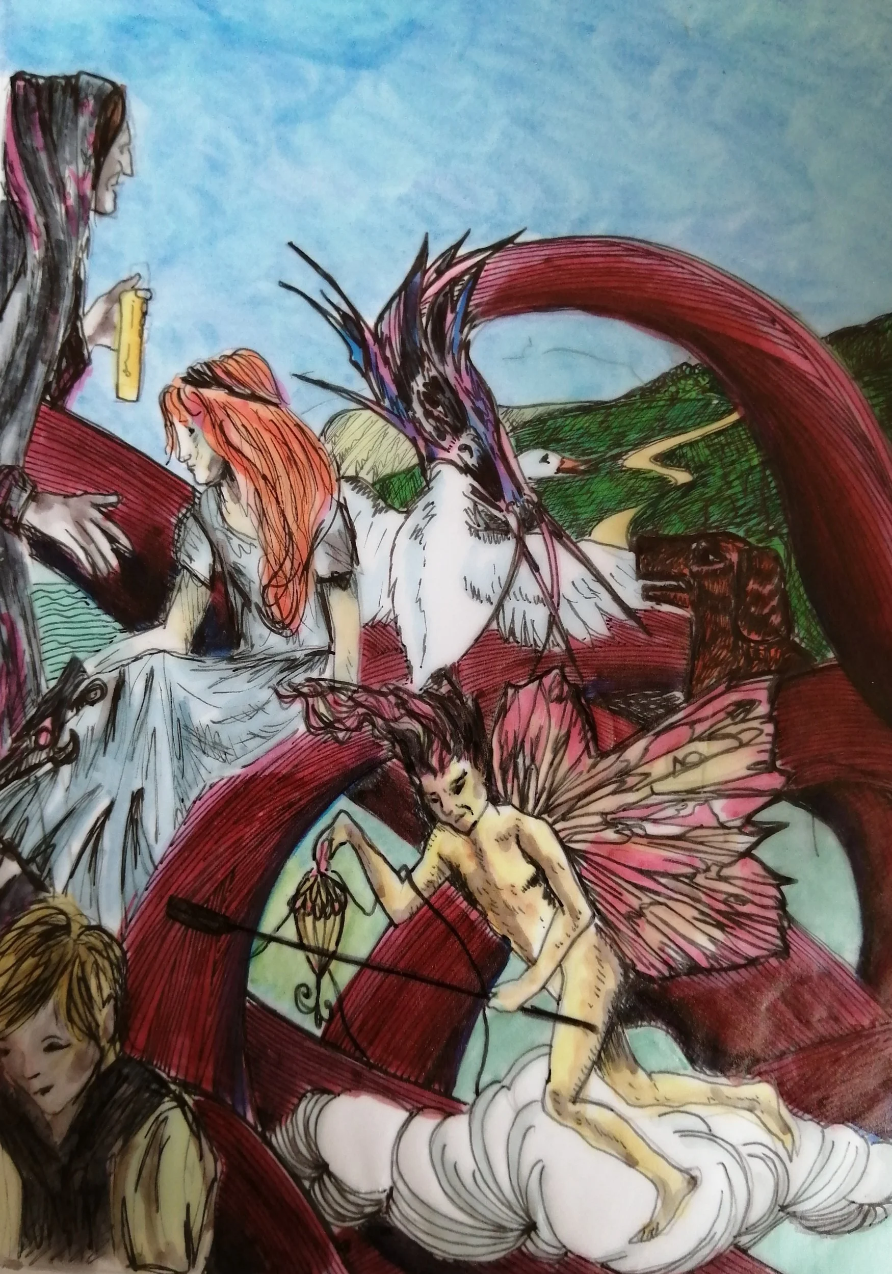 Hand drawn reworks of vintage illustrations combined with original drawings in alcohol ink.